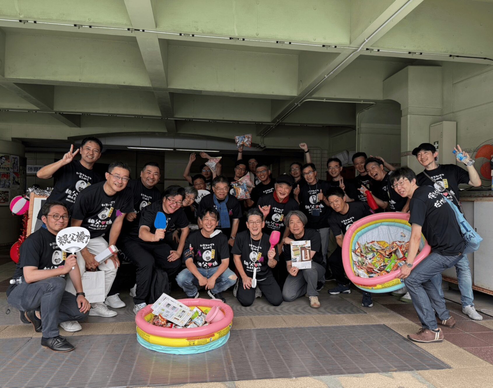 文化祭では新たな試みが始まった。これまでも母親たちがマドレーヌやどら焼きなどを販売して学校に寄付していたが、2025年に新たに登場したのは「親父(おやじ)横町」。父親たちの企画だ。おそろいの黒いTシャツには「俺たち甘いだけじゃねえ」と書いてある。家で娘に言えないことを背中で語り、駄菓子とプチコスメを混ぜたプールからスコップ2杯の取り放題という赤字覚悟の非常に「甘い」企画を展開した。