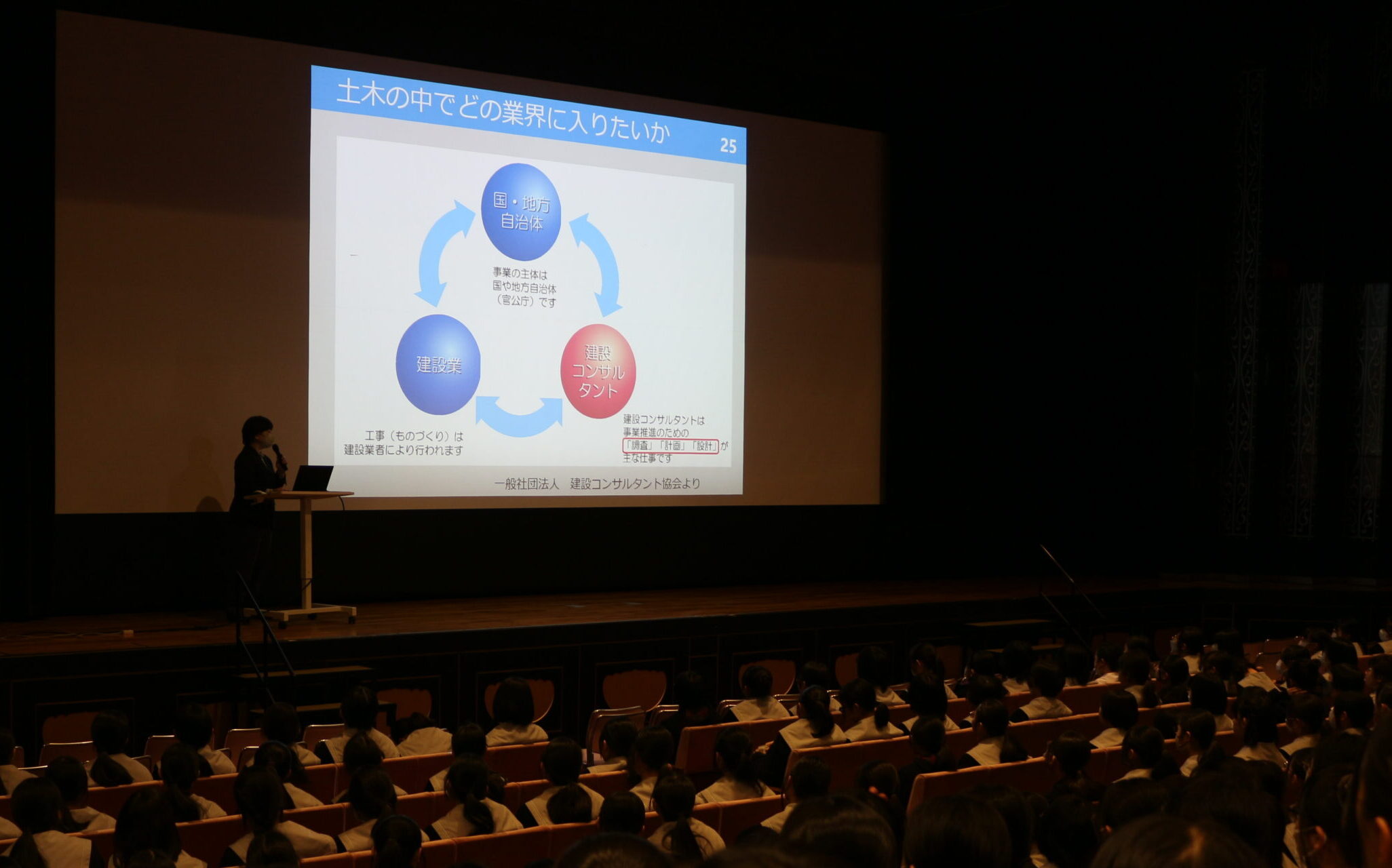 すると、6人から協力の手が上がった。講話ではそれぞれが生徒に分かりやすいようにスライドを準備して語る。父が登壇した生徒に感想を聞いた佐川みなみ教諭は「自分の父がどんな仕事をしているのか初めて知ったと話していました。家庭で職業について話すきっかけになればと思います」。