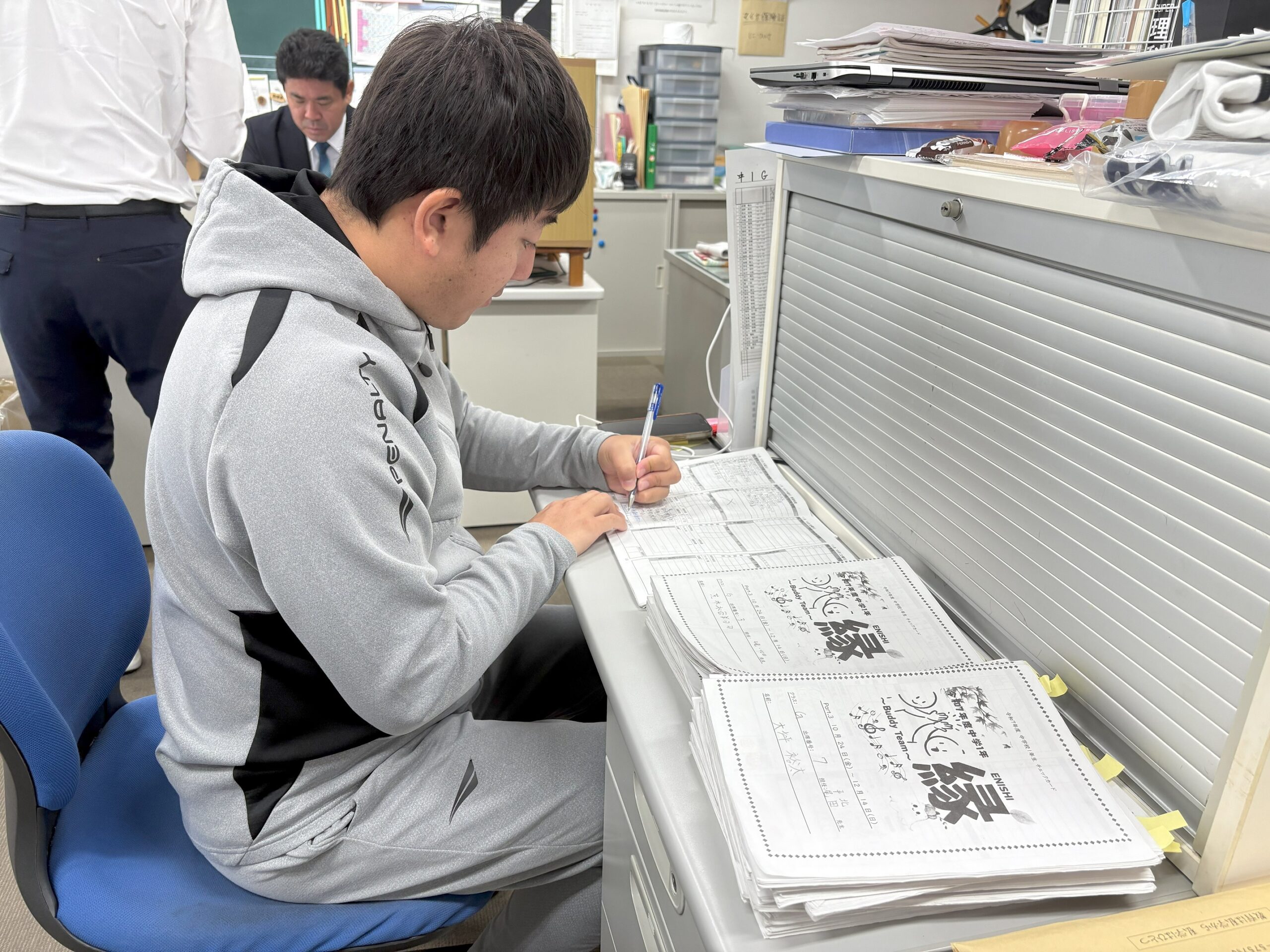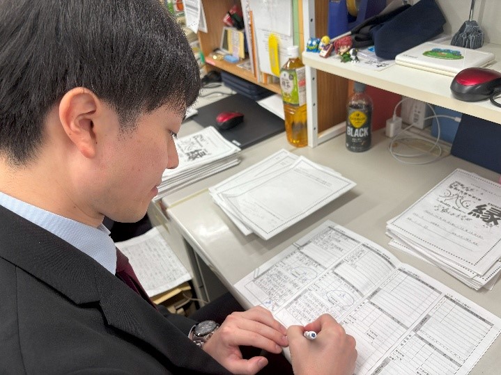 ある年、ほとんど空白で出してくる生徒が一言書いてきた。「『お母さんが1カ月ぶりに帰ってきた』と。「教室ではなかなか伝えられないことを生徒は私に伝えてくれました。私たちの仕事は成績を上げることだけじゃないですからね。彼らを支えて伸ばすために、この一言は重要な手がかりになります」。丸尾教諭はそう話す。