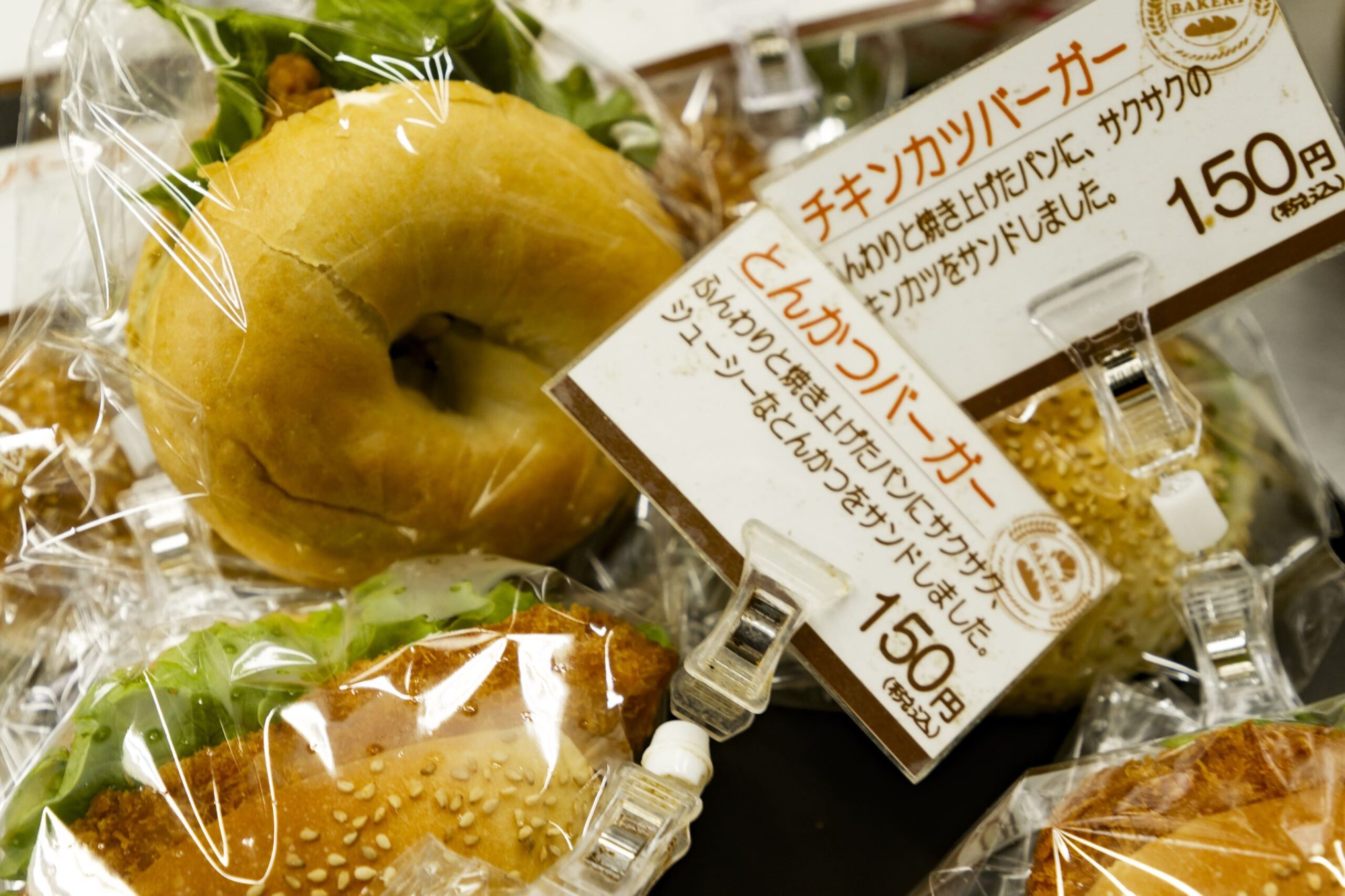 履正社中学校・高等学校(大阪府豊中市)の「カフェ ランチルーム」に併設されたベーカリーには、40種類ほどのパンがカウンターにズラリと並ぶ。なかでも人気なのが6種のバーガー。ふんわり焼き上げたパンの間にコロッケ、白身魚フライ、ミンチカツ、チキンカツ、トンカツなどが挟み込まれている。さらに、鶏のからあげ入りのベーグルや総菜パンもある。
