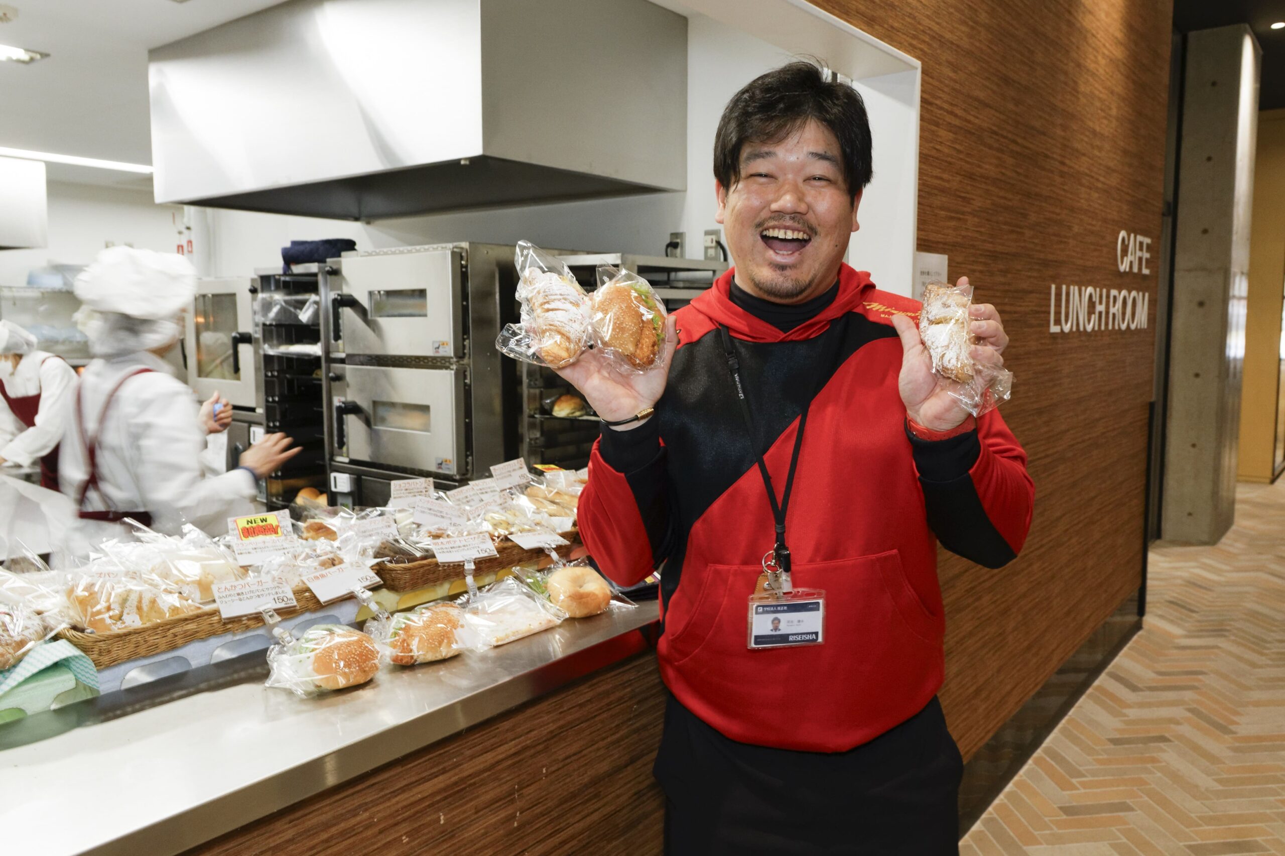教員たちも大絶賛だ。篠岡正和校長のお気に入りは、チーズナンとカスタードクリームパイ。パンを手に満面の笑みを見せる社会科の河本健斗教諭は「私のお勧めはクリームデニッシュと、てりやきチキンピザです!」と太鼓判を押す。