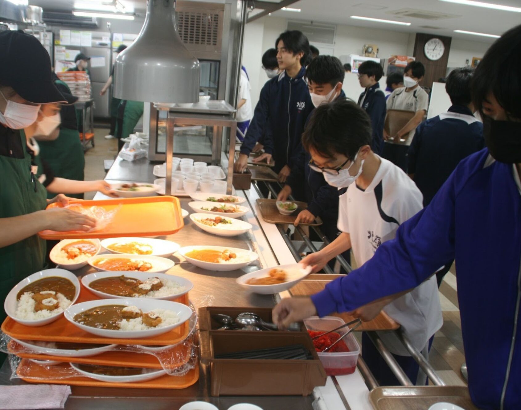 男子校の北嶺では現在、生徒の65%を超える400人が「青雲寮」に入寮する。寮の食堂では、朝昼晩に夜食をプラスした4食が毎日提供される。朝食は和洋食のビュッフェ形式で、夕食は二つの定食から選ぶ。昼食は通学している生徒も利用可能だ。カレー系、めん類、定食など3種類から選択できる。