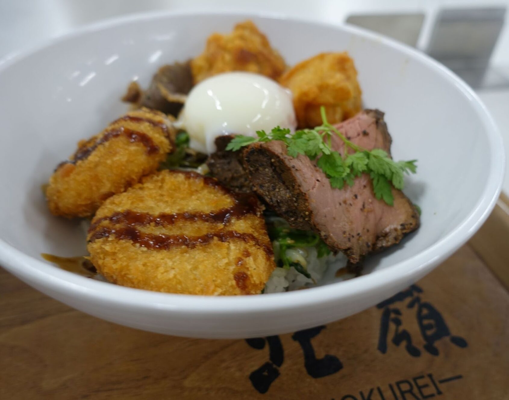 学期に一度の特別メニュー「北嶺丼」は牛・豚・鶏・羊肉がそろう
